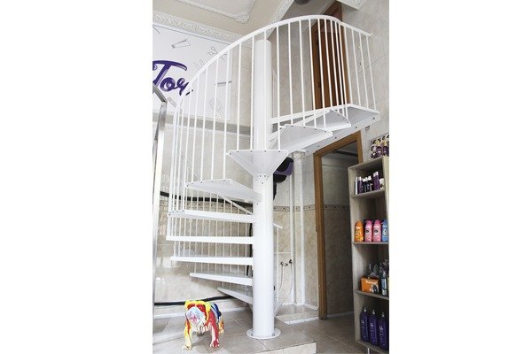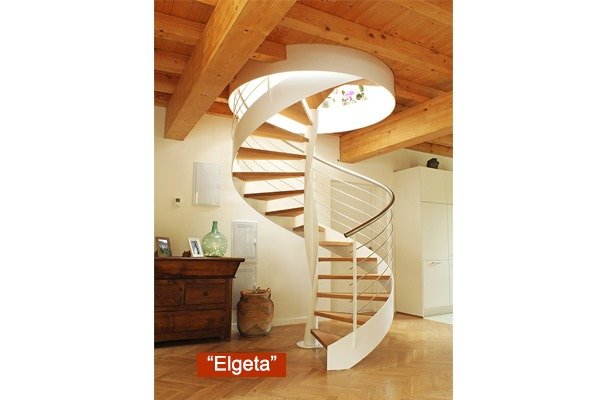 Escalera modelo “Elgeta”: estructura helicoidal pintada en blanco
